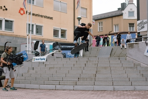 Rett før himmelen åpnet seg med regn og torden, fikk skaterne dratt på med et intensivt og underholdene norgesmesterskap i trappa på Østre Torg. Tangerud sikret seg seieren med en rå treflip lip på første forsøk.