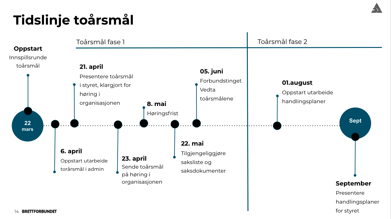 5. juni 2021 skal Brettforbundstinget vedta nye toårsmål. Målene skal være styrende og gi en retning for Brettforbundet i en toårsperiode. Vi har en ambisjon om at de nye målene skal inspirere og oppnå størst mulig grad av enighet i organisasjonen før forbundstinget. Med innspill fra klubbene har administrasjonen utarbeidet et høringsforslag som ble sendt til klubber og komiteer 23. april. Styret i Brettforbundet fikk utkastet til høringsdokumentet til behandling i styremøtet 21. april 2021. Styret vedtok følgende: